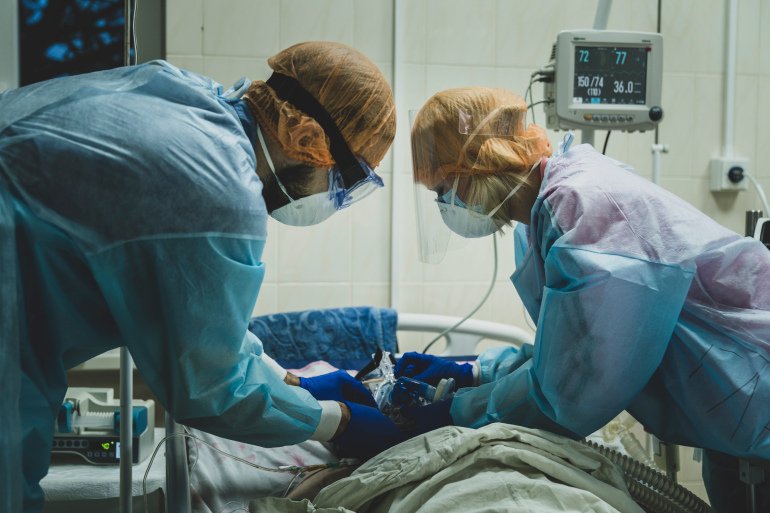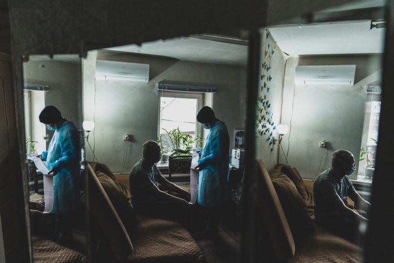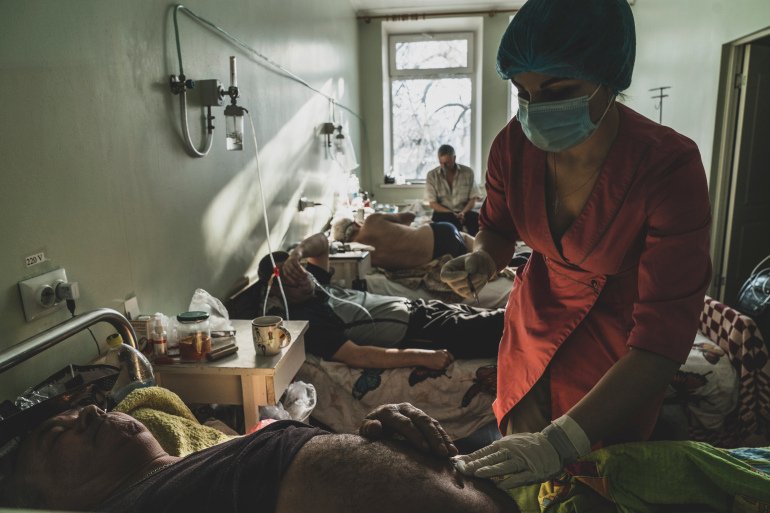 Коли в період з жовтня по грудень 2020 року захворюваність різко зросла, багато лікарень на сході України були перевантажені. Не вистачало персоналу, оскільки багато лікарів поїхали звідси через війну або пандемію.