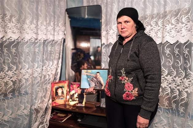 Чому я не відчуваю тут страху? А також люті, болю чи суму? Ця війна залишається для мене абстрактною навіть в її епіцентрі. Я хочу дізнатись більше про Олександра, тому їду на його малу батькывщину. У невеликому селищі під Миколаєвом проживає менше 100 людей. Тут виріс Олександр. «Я не знаю, хто винен у смерті мого сина», – каже його мати Тетяна Сергіївна. Крихітний будинок, блакитні лавки та цуценята за дверима. Зима відчувається в цьому будинку усюди. Тетяна сидить у кріслі перед пічкою. Вона плаче. Втрата сина позбавила її усіх сил. Це помітно з того, що вона нічого мені не пропонує, адже гостинність завжди була присутня в характері українців. «Неважливо, хто винен», – каже Тетяна Сергіївна. Її син зараз мертвий і нічого б не змінилось, якщо б вона знала злочинця. Вона показує мені свій вівтар: три фотографії, молодий Олександр у парадній формі, змучений Олександр після війни та Олександр незадовго до смерті з дельфіном у ставку. На цій світлині він посміхається. Мати запалює свічку, шматок хліба лежить на чарці горілки. «Чому не повідомляють про смерть Олександра, чому нічого не пишуть?», – запитує вона мене.