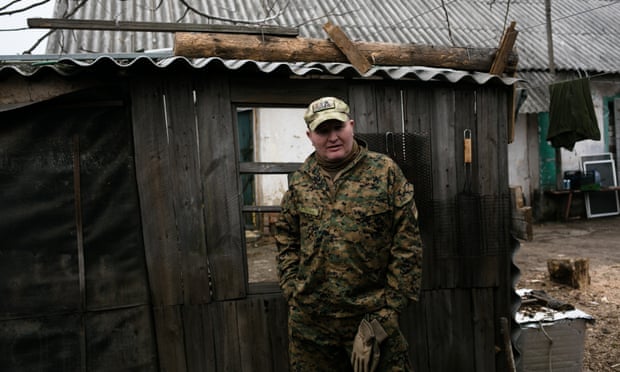 На подвір’ї покинутого будинку в Мар’їнці, лише за 400 м від найближчих військових позицій сепаратистських сил, український солдат під псевдонімом Каба впевнений, що Україна зможе протистояти Росії.