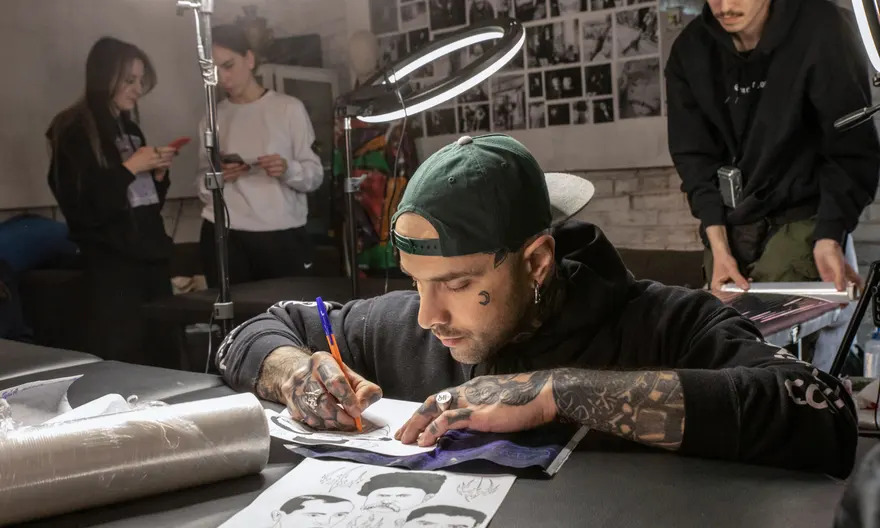 «На початку війни працювати було неможливо, клієнтів не було, переїздів не було. Але згодом люди почали питати про татуювання, тому ми організували цей захід», – зазначив Олександр, 34-річний художник із 11-річним стажем.