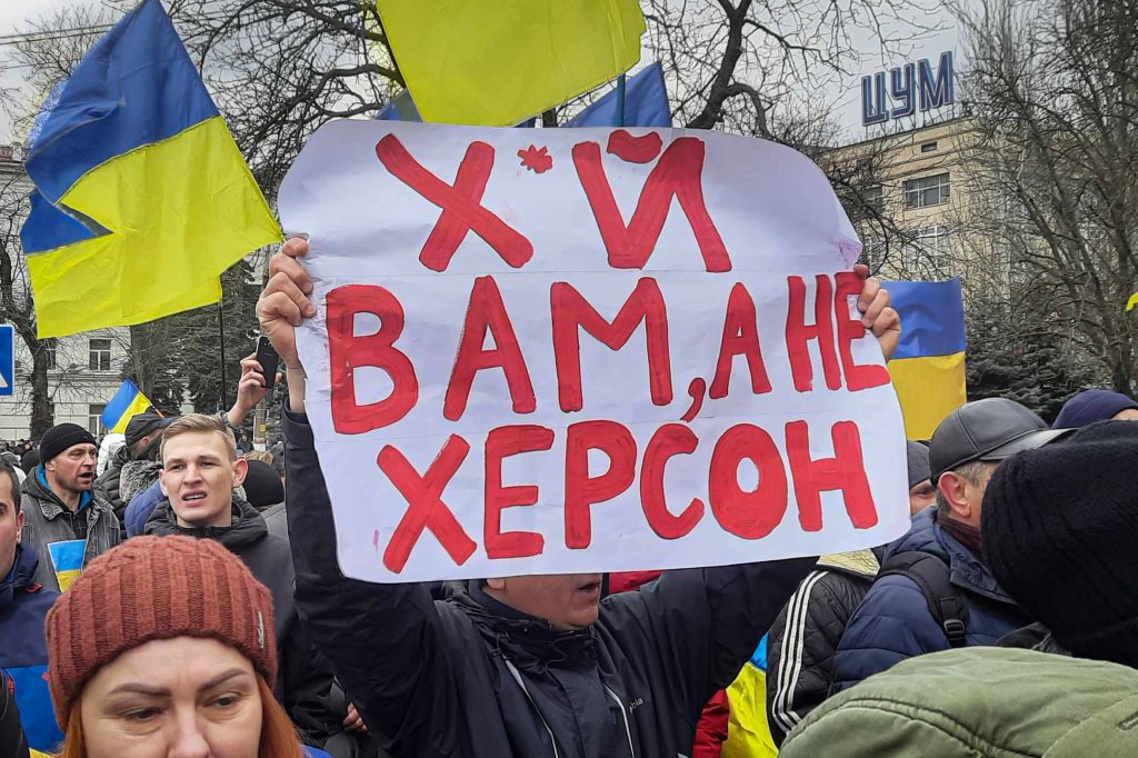 У Херсоні російська військова влада нав’язала російську мову в школах і заборонила українську мову. Вони роздають російські паспорти і, за словами українських чиновників, планують провести референдум про об’єднання з РФ.