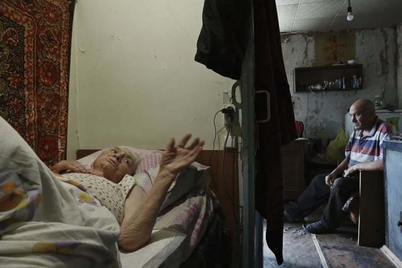 Неподалік 83-річна Марія Круглова лежить у своєму ліжку в будинку, який майже зруйнував ракетний удар. Під час нападу загинув їхній сусід Віктор.
