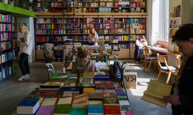 Полиці забиті українською класикою, сучасною художньою літературою та поезією, а також іноземною літературою у перекладах – нобелівський лауреат Ольга Токарчук та Джордж Орвелл. Є розділи «книги про Київ» та «про війну». Тут немає книг російською мовою чи російських авторів. Зазначимо, що до 2014 року на книжковому ринку України домінували російськомовні видання, але після російського вторгнення усе змінилось.