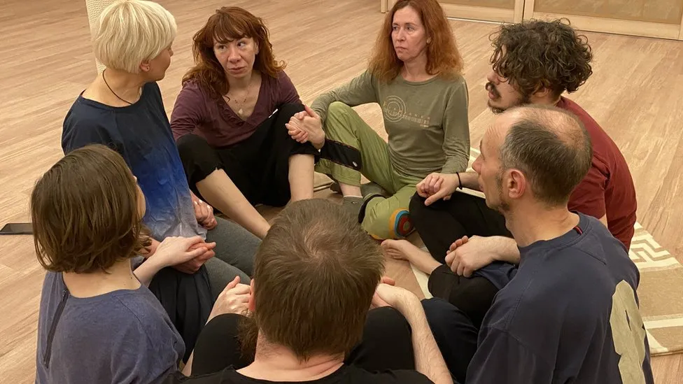 Для учасників цієї програми у Харкові це означає терапію тілом. Вони беруть участь у сеансі, де сидять і діляться почуттями, перш ніж досліджувати дотик і рух один з одним.