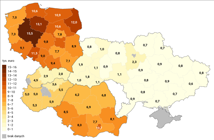 Різниця в цінах на землю сільськогосподарського призначення в Україні та в країнах-сусідах ЄС ще більш помітна на регіональному рівні. Навіть вартість землі у гірських районах Словаччини вища, ніж у Київській області, а у сусідніх з Україною польських воєводствах різниця в кілька разів.