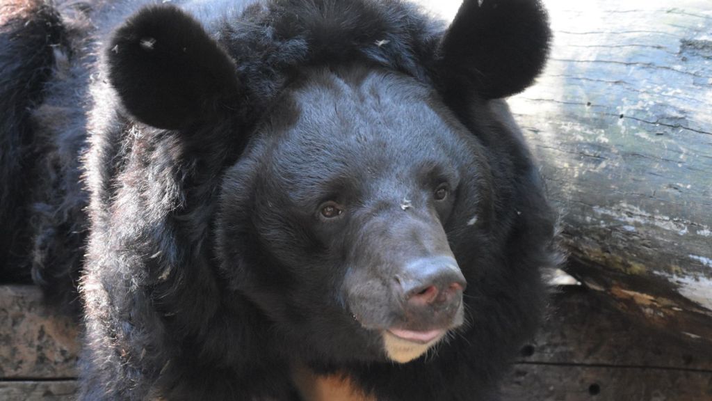 Чорний азіатський ведмідь Ямпіль є однією із небагатьох тварин зоопарку, які пережили російський обстріл у селі на Донеччині