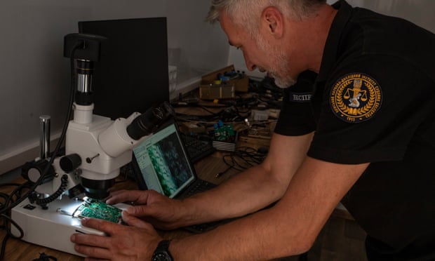 Олександр обережно переміщав шматок плати під мікроскопом, спостерігаючи, як заплутана мережа чіпів і крихітних дротів відображалася у збільшеному вигляді на екрані поруч. У центр уваги потрапили три блискучі сріблясті літери: «ФСБ» — величезне відтворення крихітної голограмної наклейки на дошці, ледь помітної неозброєним оком, і це свідчить про те, що вона пройшла процедуру контролю якості російської спецслужби. Про це йдеться у спеціальному репортажі The Guardian, переказ якого пропонує Foreign Ukraine.
