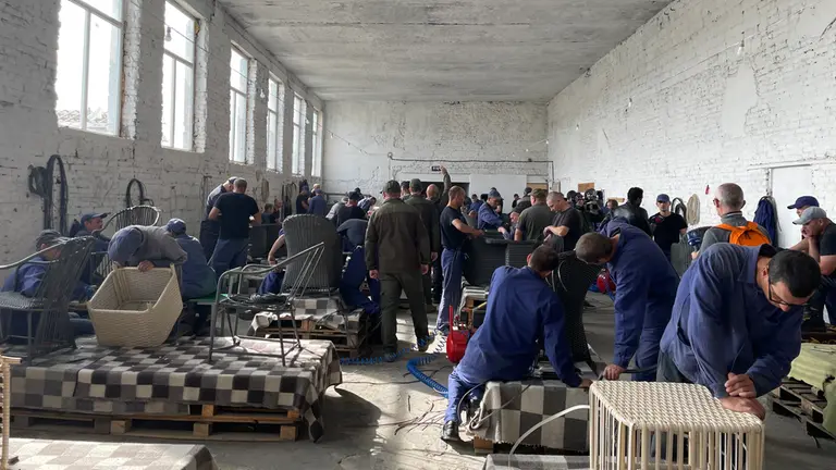 «Це все вигадка», – стверджує військовополонений Руслан, який збирає садові меблі у майстерні.