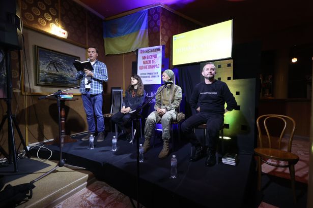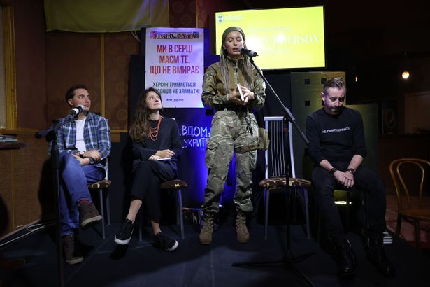 Читання розпочнуться одразу після 11 години ранку. Сьогодні до нас приєдналася Ярина Чорногуз, молода жінка у військовій формі. Вона поетеса та військова, яка раніше дислокувалася у Маріуполі та Бахмуті, а зараз у Херсоні. Кімната заповнюється солдатами, підлітками, пенсіонерами. Сходами спускаються журналісти у захисних костюмах, кореспонденти з Японії та Каліфорнії, один з яких уже два роки знаходиться у Херсоні.