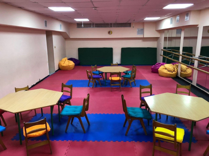 Персонал доклав усіх зусиль, аби зробити все максимально нормальним. На стінах, поруч із яскравими картинками із зображенням квітів та гігантських гусеницях, висять плакати про небезпеку мін. Але коли спрацьовують сирени, що попереджають про наближення ракет, нікому не потрібно рухатися.