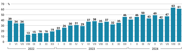 Крім того, знайти кваліфікованих працівників стає дедалі важче – це питання відзначили 55,1% респондентів. Для 39,2% респондентів було складно знайти навіть некваліфікований персонал. Варто наголосити, що проблеми, які пов’язані з нестачею робочої сили, системно посилюються з другої половини 2022 року.