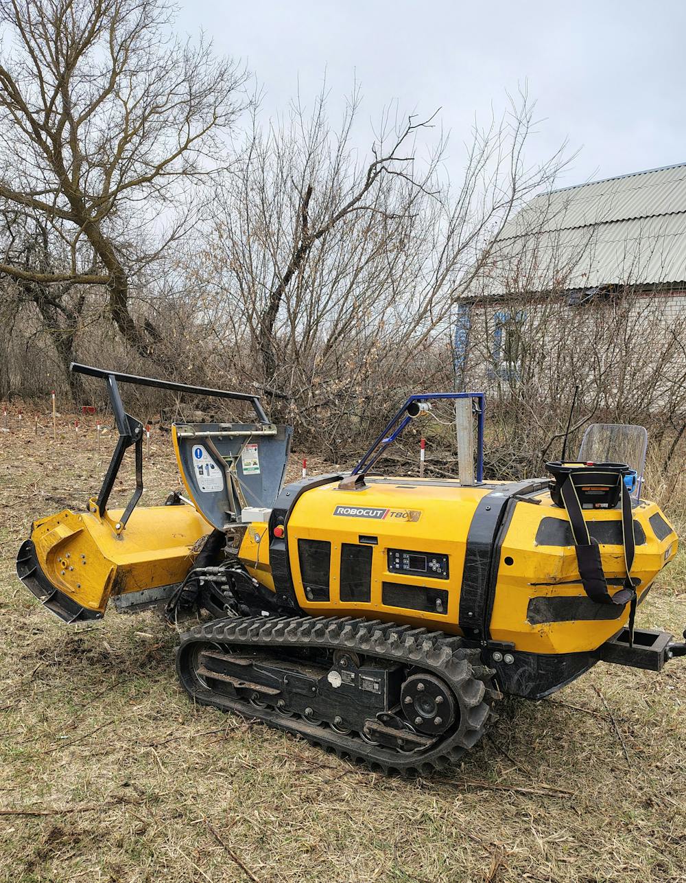 Сапери з найбільшої у світі організації з розмінування The HALO Trust очищають території у Броварському районі від нерозірваних боєприпасів за допомогою дистанційно керованої машини Robocut