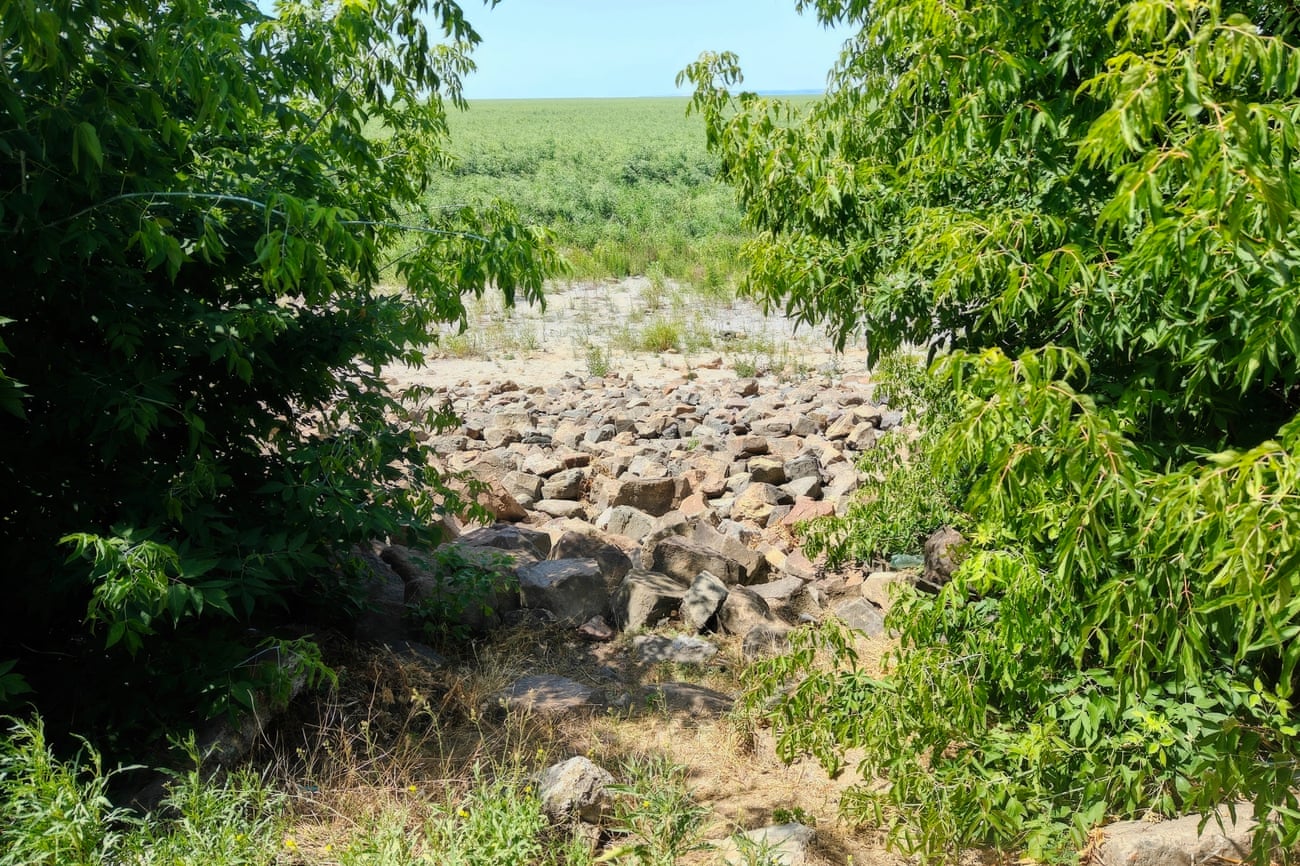 Суха колишня берегова лінія всіяна лушпинням та мушлями водних організмів, які колись тут жили. За нею, до горизонту, у напрямку окупованої Запорізької атомної електростанції, простягається величезне море молодих дерев. Його розміри важко осягнути: площа поверхні водосховища становила 2155 кв. км – більше, ніж Нью-Йорк та його п’ять районів.