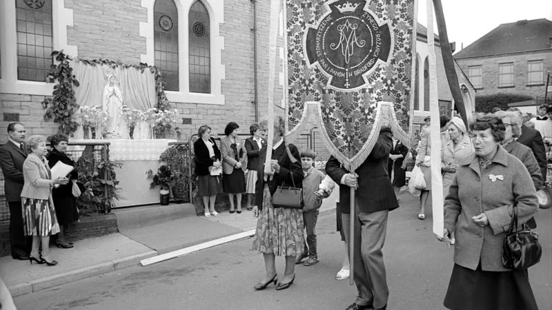 Польська громада Бредфорда святкує католицьке свято Тіла Господнього біля польського парафіяльного костелу Ченстоховської Богоматері у 1987 році / Фото: Tim Smith