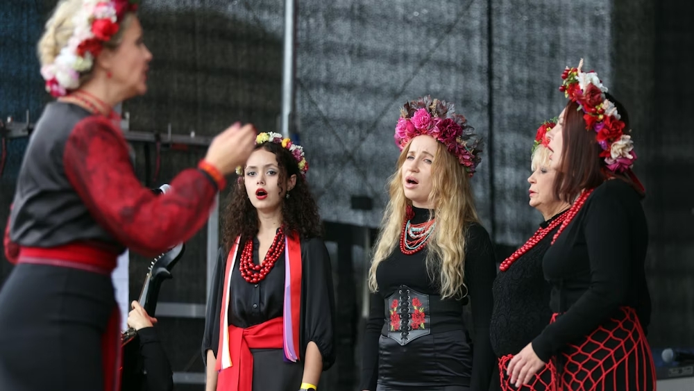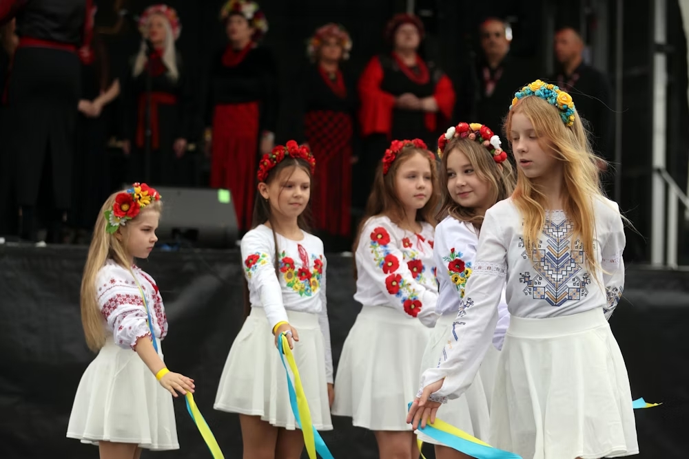 На сходах Музею шоколаду у Кельні дівчата швидко готуються до виступу. Вони терпляче сидять у своїх біло-червоних традиційних костюмах, доки їхні матері покладають їм на голови синьо-жовті вінки. Поруч із ними українки позують для фотографій на тлі синьо-жовтої статуї «UA». Про це розповідає Foreign Ukraine з посиланням на німецьке видання Kölnische Rundschau.