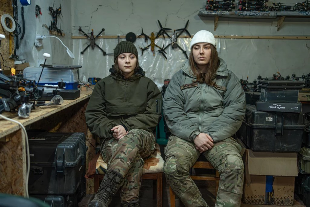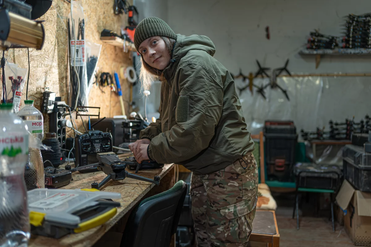 На початку 2025 року у таборі «Хартії» на північному сході України дві операторки безпілотників — Євгенія та Дарія — оглянули щойно виготовлені FPV-дрони у невеликій хатині за допомогою 3D-принтера.