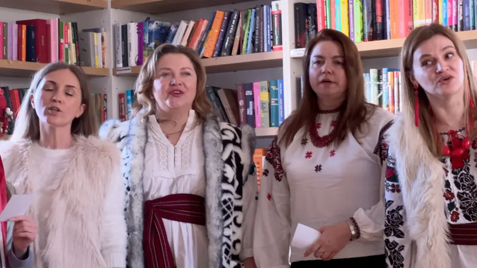 Нестеренко та її сестра показали український звичай «вигулу кози», коли тварину ведуть вулицями у рамках святкування Нового року.