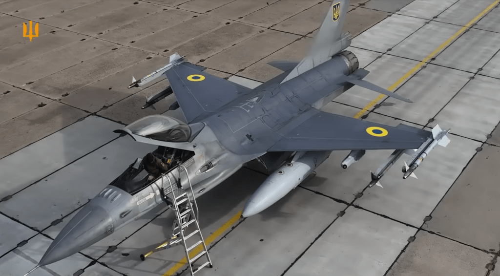 Озброєний F-16 між вильотами / Скріншот ВПС України.