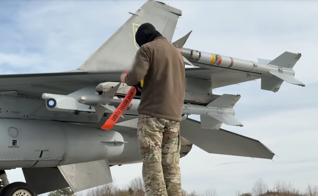 Винищувач F-16 із двома ракетами Sidewinder та пілоном Terma / Скріншот ВПС України