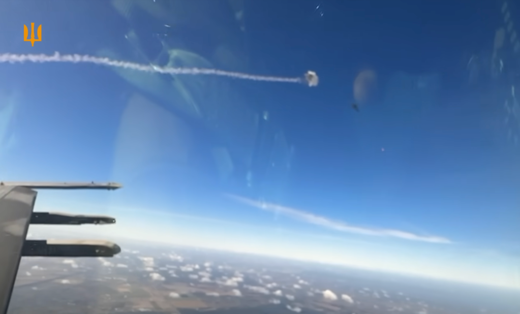 Бойова ракета AIM-9L/M, запущена із законцювання крила українського винищувача F-16 / Скріншот з відео ВПС України